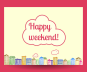 Greeting card with watercolor painted houses. Vibrant and happy kids design.