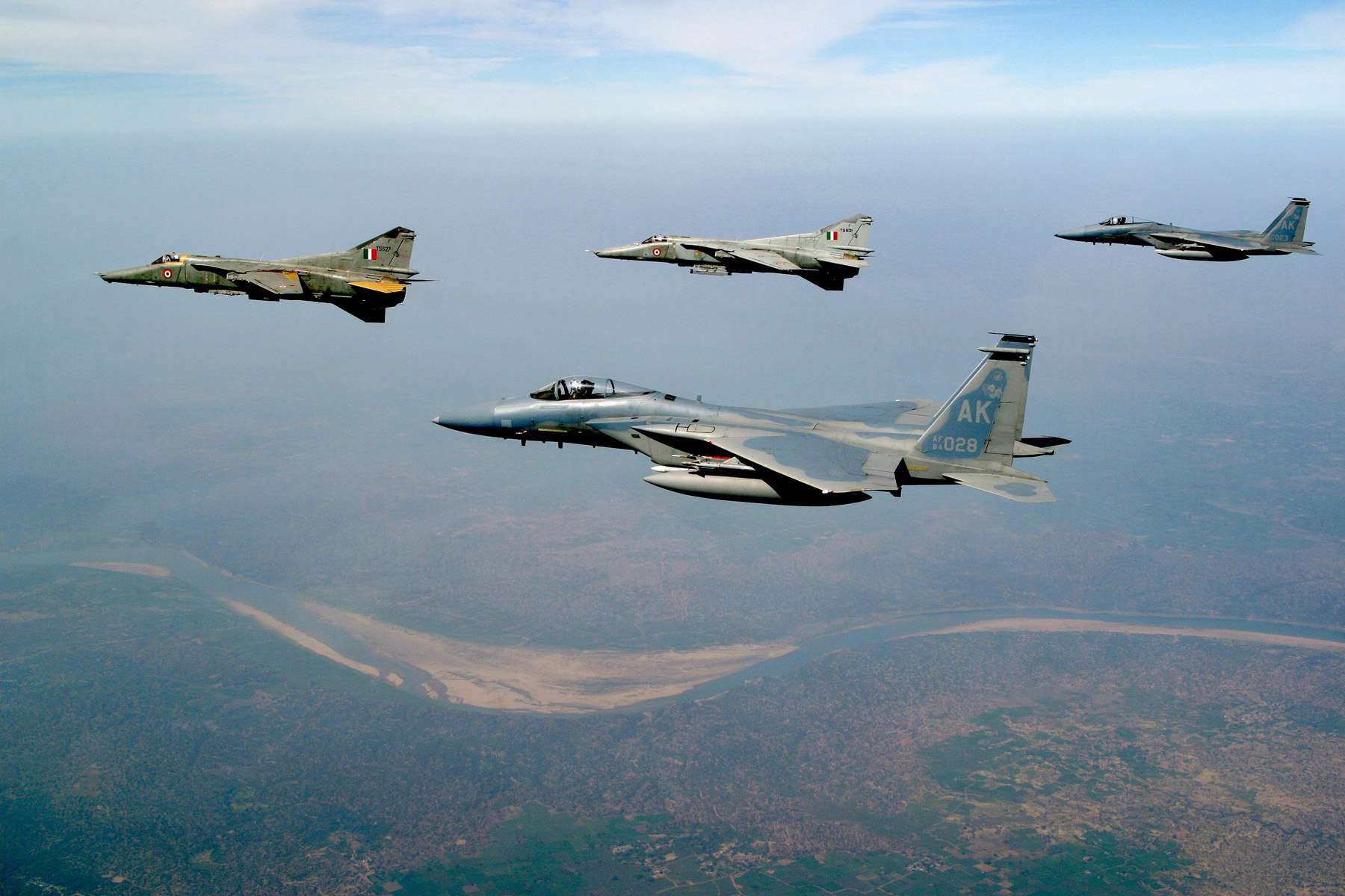 دو جنگنده ميگ 27 درحال پرواز درکنار دو f15