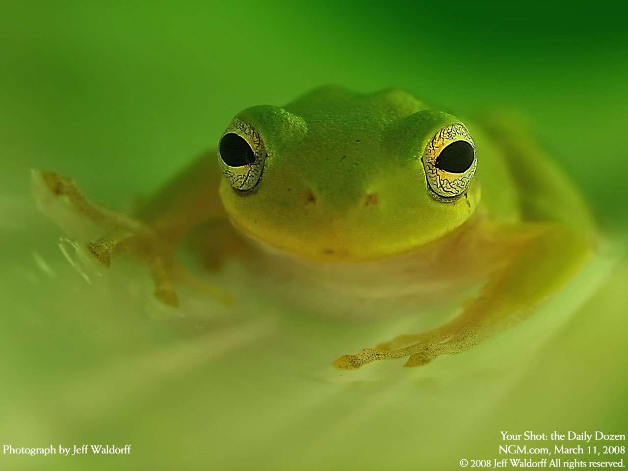 نماي نزديک از يک غورباقه درختي سبز ، اين غورباقه هواشناس بسيار قابلي است و از حسي برخوردار است که مي توان زمان آمدن باران را بفهمد قورباغههاي درختي (Hylidae) خانوادهاي از قورباغهها هستند. قورباغههاي درختي را در مازندران داروَک ميگويند.در مازندران ميگويند چون قورباغه درختي بخواند، نشان روز باراني است. (مازندراني: اگر داروک بخونده گنه وارش اِنِه)غورباقه هاي درختي در مناطق گرم با زندگي روي درختان و بوتهها سازگاري پيدا کردهاند. بعضي از گونهها هرگز درختان را ترک نميکنند و حتي روي درختان، توليد مثل ميکنند. بيشتر قورباغههاي درختي داراي انگشتان بلند و دست و پا هستند که روي آنها صفحههاي چسبناکي براي گرفتن شاخهها و برگهاي نرم وجود دارد. بعضي از قورباغهها با استفاده از انگشتان پرده دارشان که به عنوان بال پرواز به کار ميبرند، از اين درخت به آن درخت ميپرند. اين تصوير از مجموعه عکسهاي برتر ماه فوريه 2008 درسايت نشنال جئوگرافيک (nationalgeographic) گرفته شده است