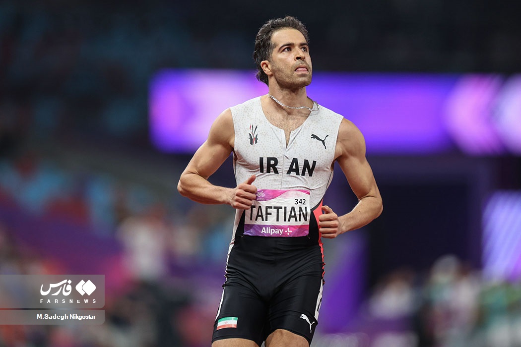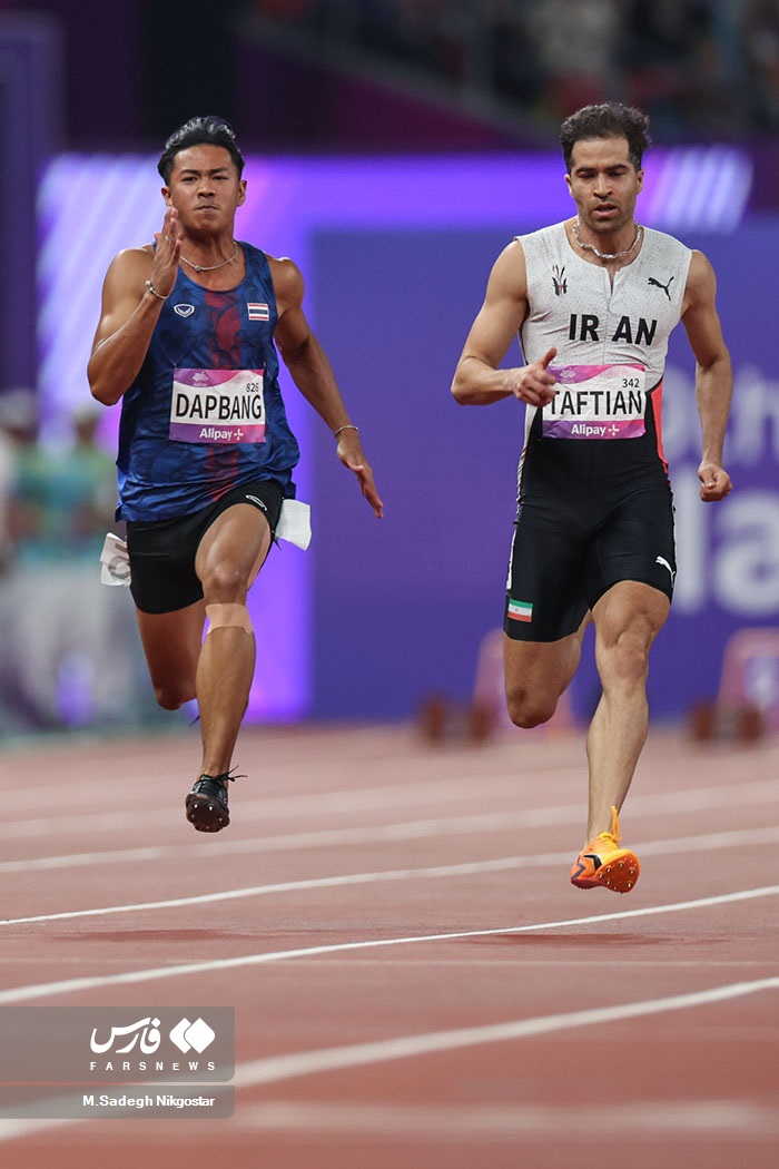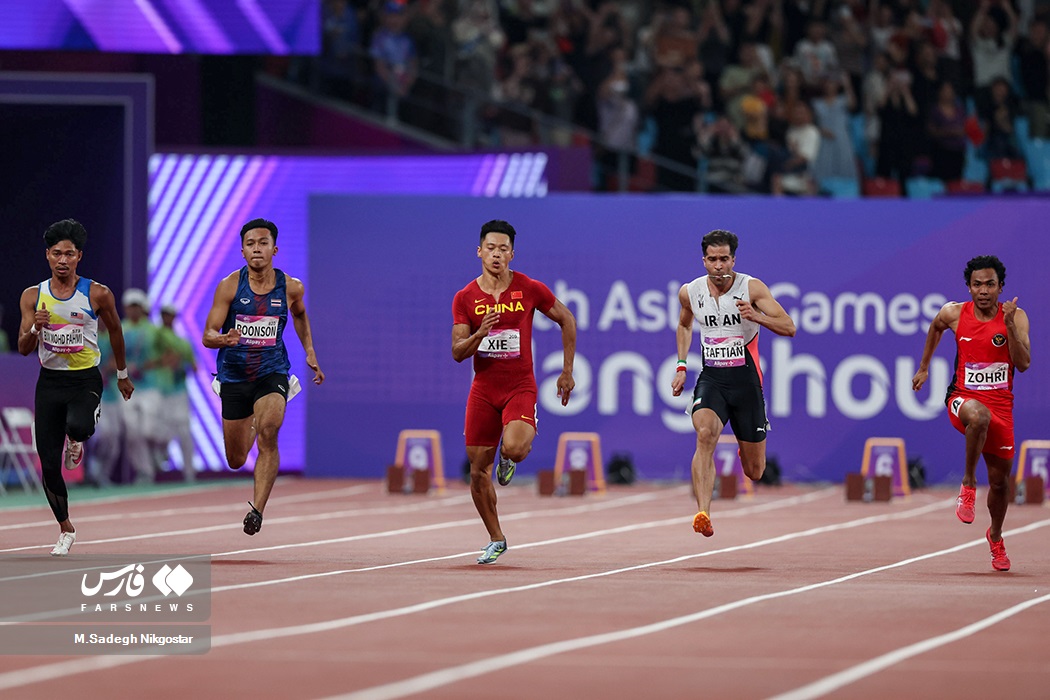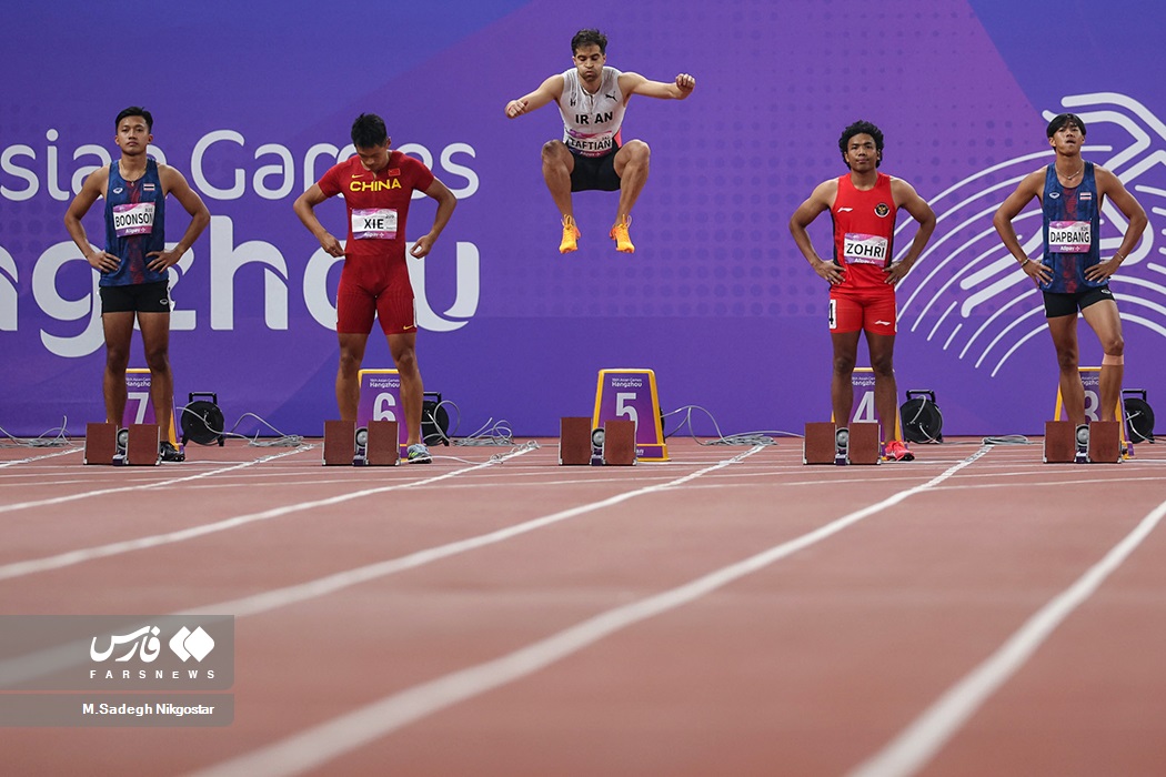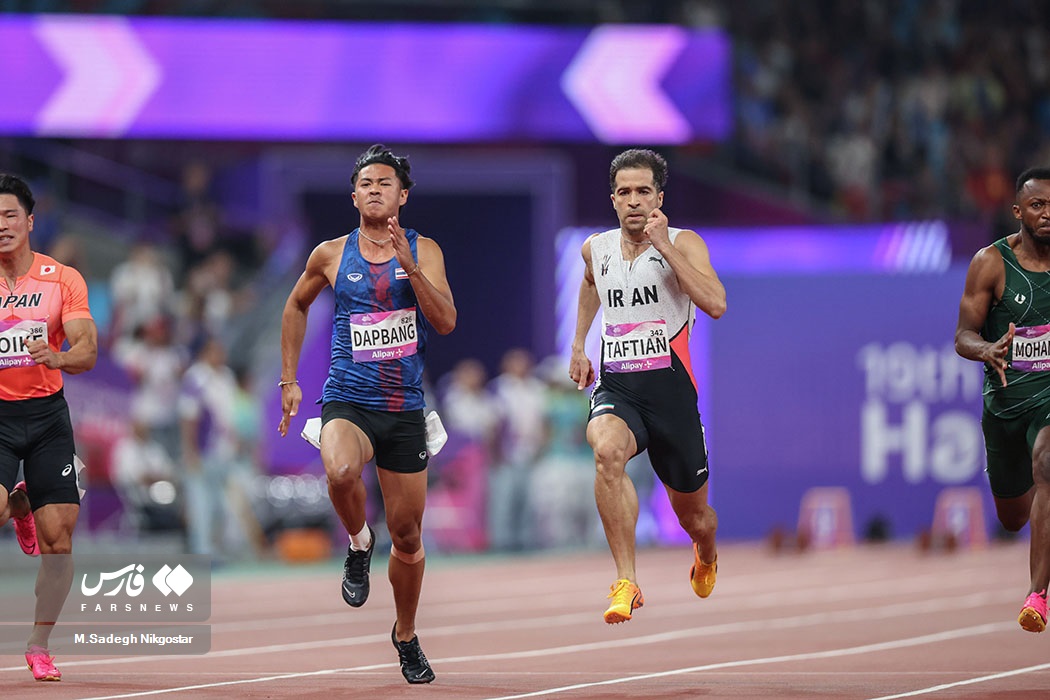 حسن تفتیان که روز گدشته به مرحله نیمه نهایی مسابقات دوی ۱۰۰ متر نوزدهمین دوره بازی های راه یافته بود، امروز شنبه ۸ مهر ۱۴۰۲ در این مرحله به رقابت پرداخت.دونده سرعتی کشورمان در این مرحله با رکورد ۱۰.۱۳ ثانیه از خط پایان عبور کرد و به عنوان نفر اول دسته خود به فینال صعود کرد.در فینال دوی ۱۰۰ متر مردان حسن تفتیان نماینده کشورمان که به عنوان نفر اول گروه خود و با رکورد ۱۰.۱۳ ثانیه به فینال رسیده بود، در این مرحله با رکورد ۱۰.۱۴ثانیه در جایگاه چهارم ایستاد. منبع: فارس