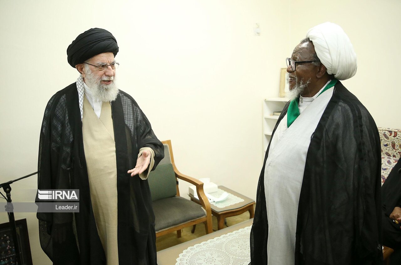شیخ«ابراهیم زکزاکی» رهبر جنبش اسلامی نیجریه و همسر وی؛ پیش از ظهر شنبه ( ۲۲ مهر ۱۴۰۲) با حضرت آیتالله خامنهای رهبر انقلاب اسلامی دیدار کردند.|منبع: فارس