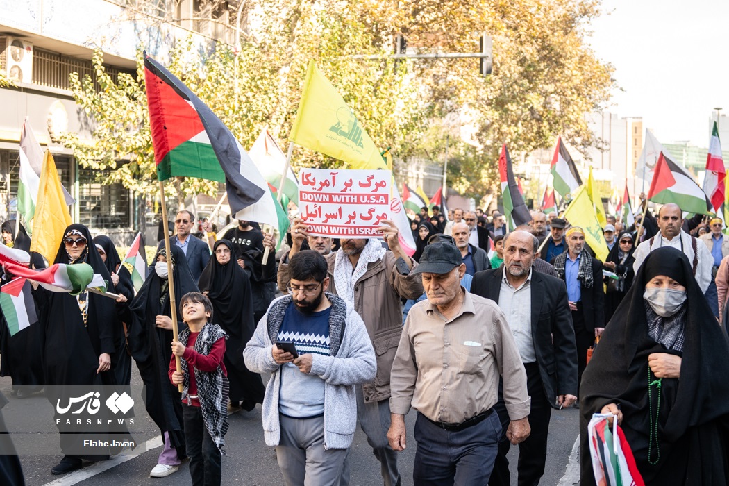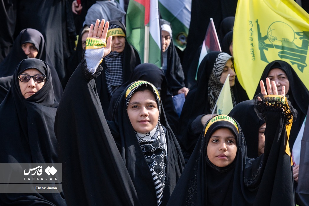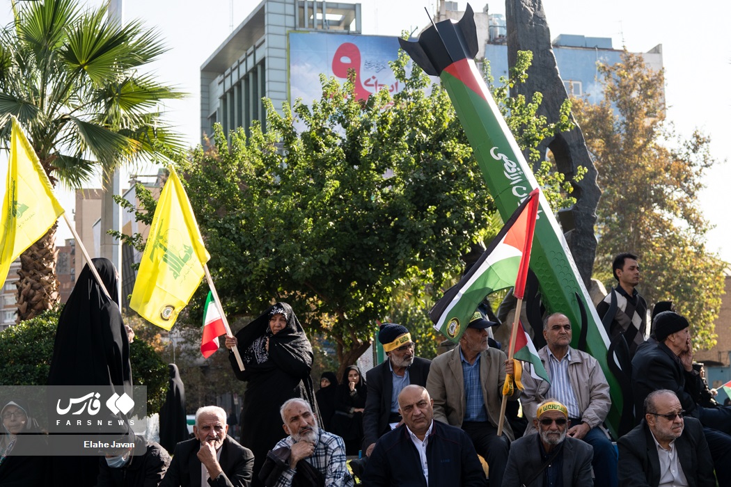تجمع ضدصهیونیستی آزادگان و پیشکسوتان دفاع مقدس، مدافعان حرم و اعضای هیاتهای رزمندگان اسلام شهر و استان تهران با سخنرانی سردار علی فدوی جانشین فرمانده کل سپاه پاسداران، جمعه ۱۹ آبان ۱۴۰۲ در میدان فلسطین تهران برگزار شد. | منبع: فارس