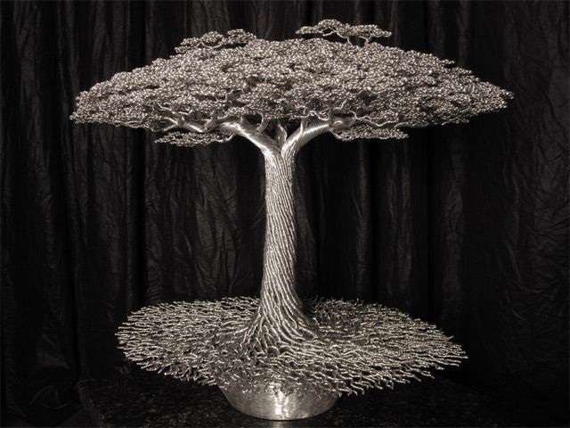 این درخت توسط Kevin Iris ساخته شده است.او ده ها درخت با سیم های سفت درست کرده است که بعضی از آنها حتی به فروش رسیده اند.او در خانه خود جنگل های مینیاتوری و 20 درخت ساخته شده با سیم دارد و به طور کامل در ساخت انواع درخت غرق شده است.او با ساختن این درختان فلزی که نمی توان آنها را از بین برد سعی دارد به گونه خود با از بین بردن درختان مخالفت کند.
