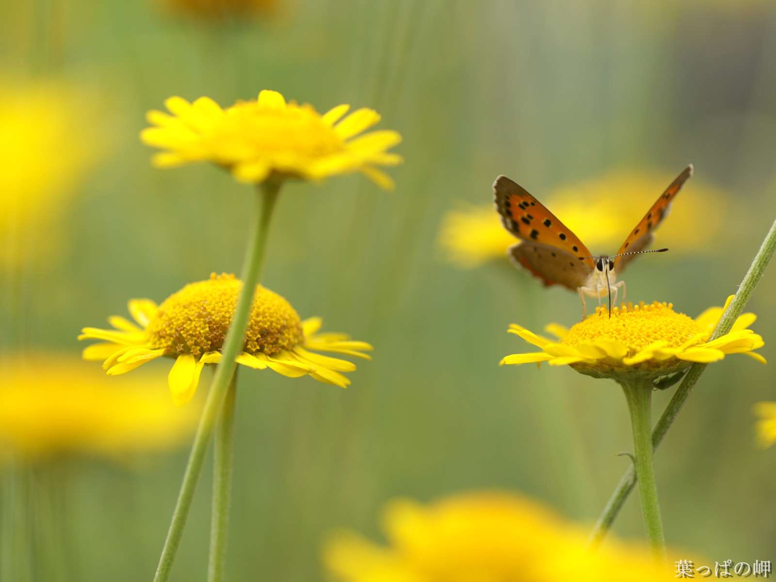 پروانه اي روي گلهاي زرد