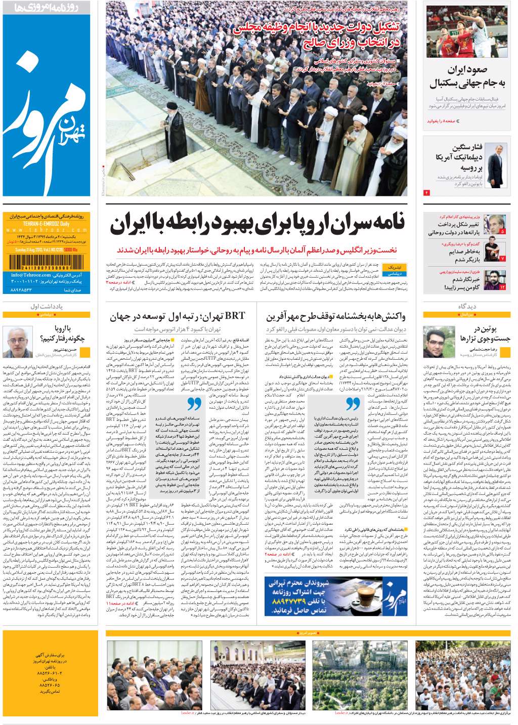 روزنامه تهران امروز 20 مرداد ۱۳۹۲