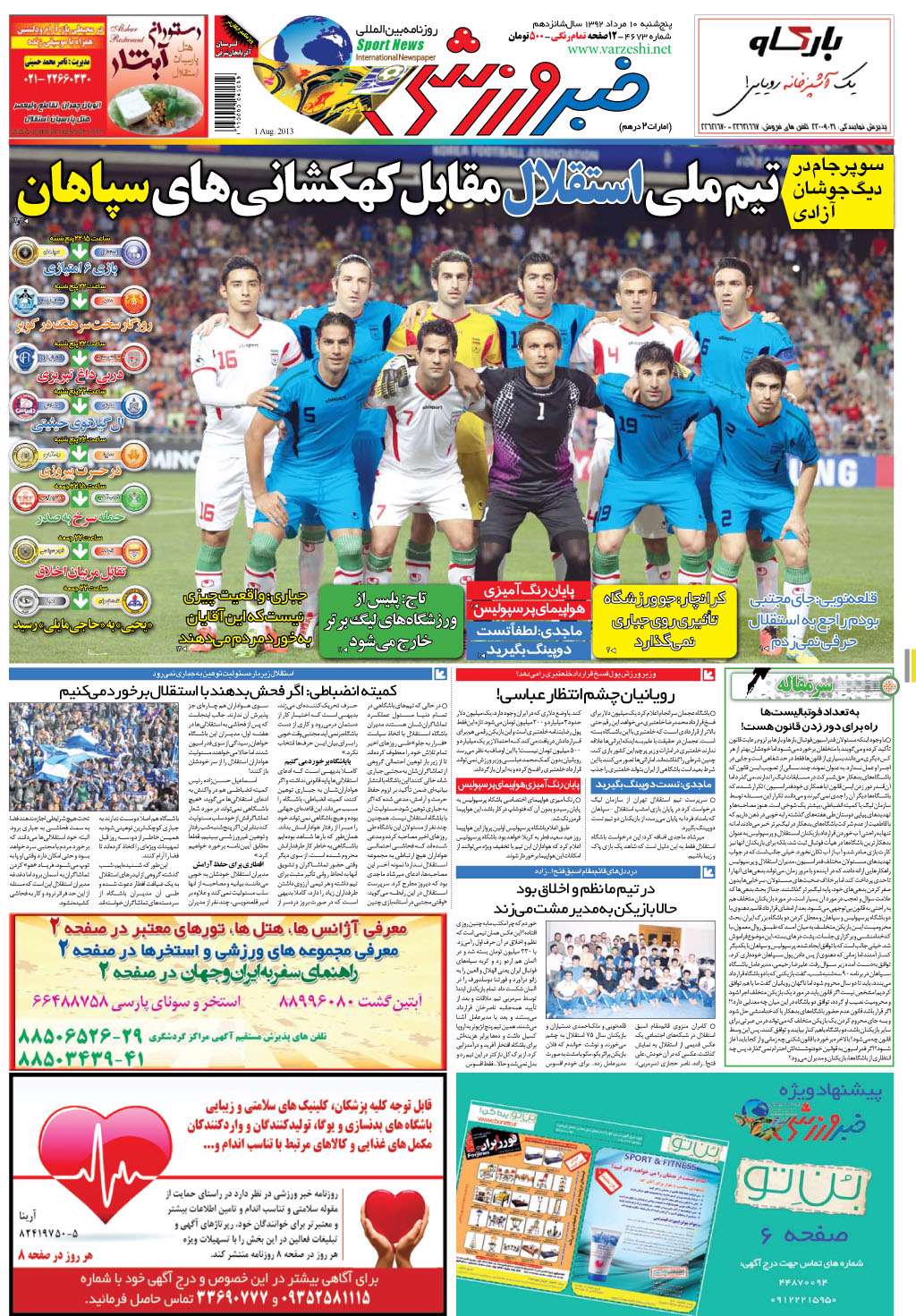 خبر ورزشی 10 مرداد ۱۳۹۲