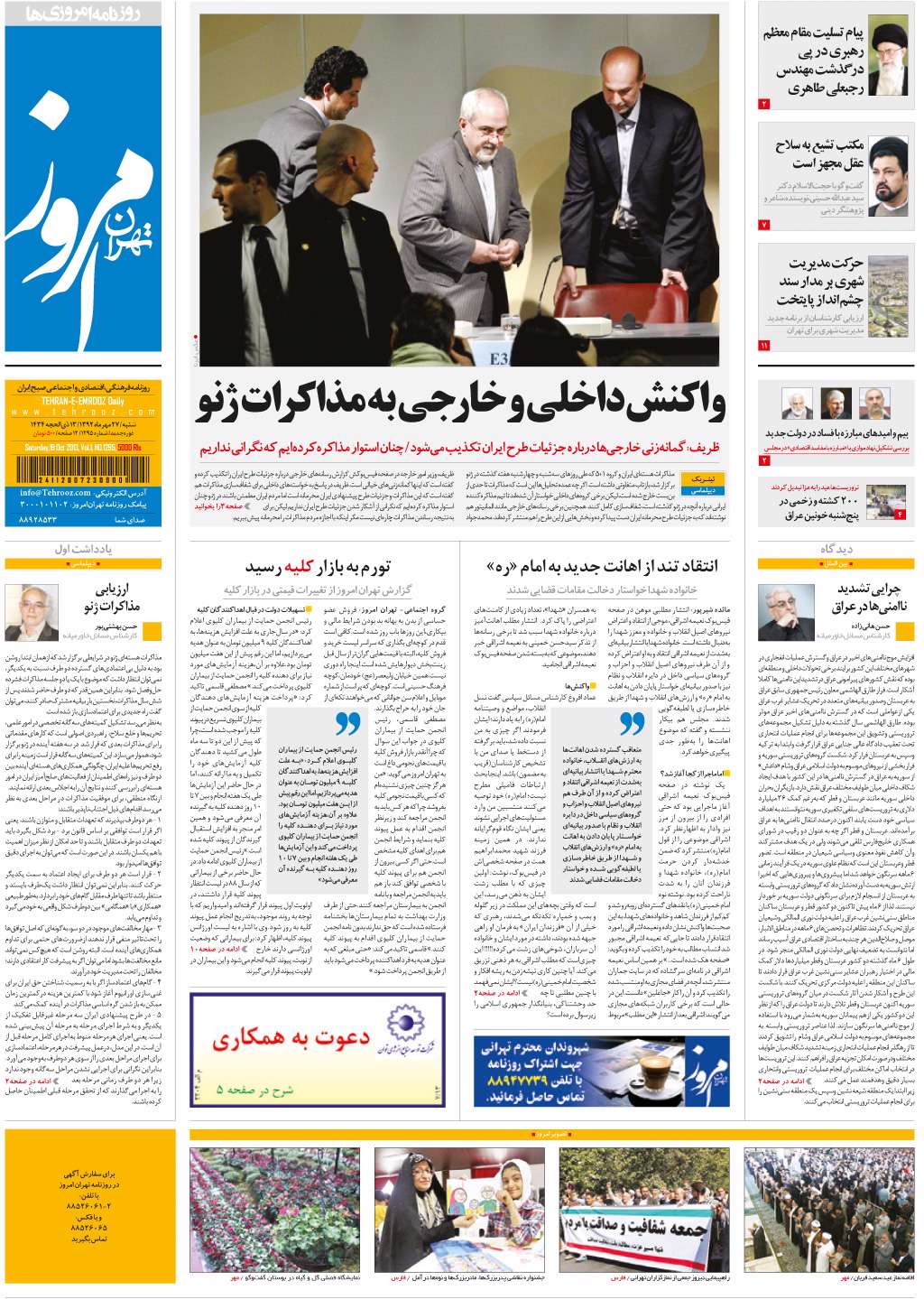 روزنامه تهران امروز، شنبه 27 مهر 1392