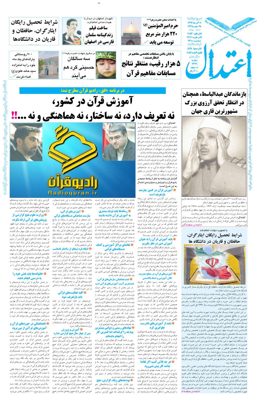 روزنامه اعتدال، دوشنبه 11 آذر 1392