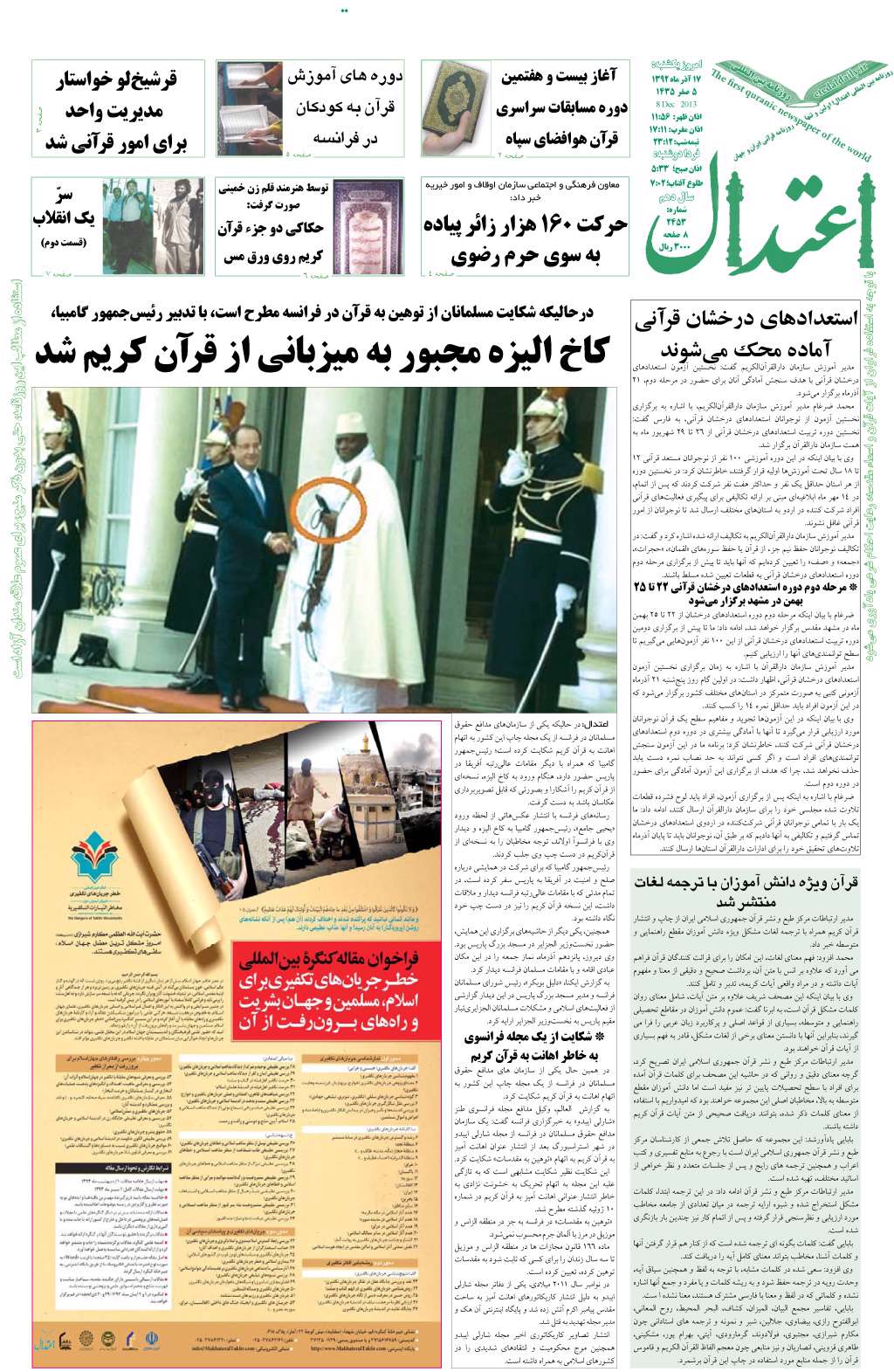 روزنامه اعتدال، یکشنبه 17 آذر 1392