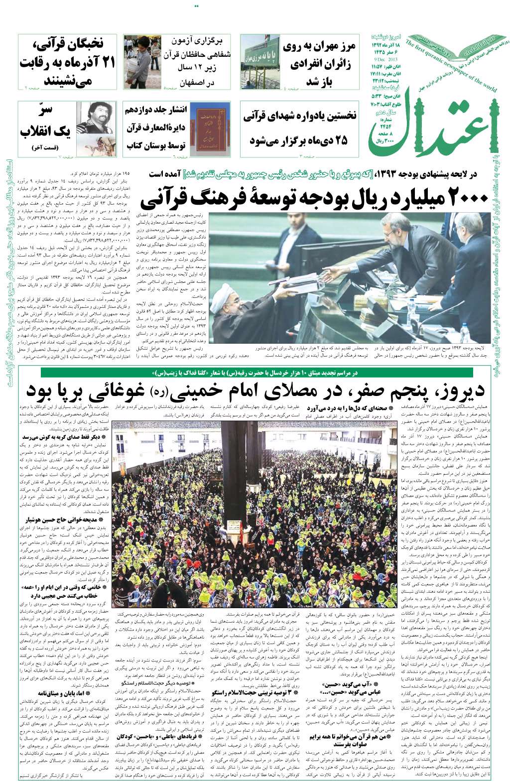 روزنامه اعتدال، دوشنبه 18 آذر 1392