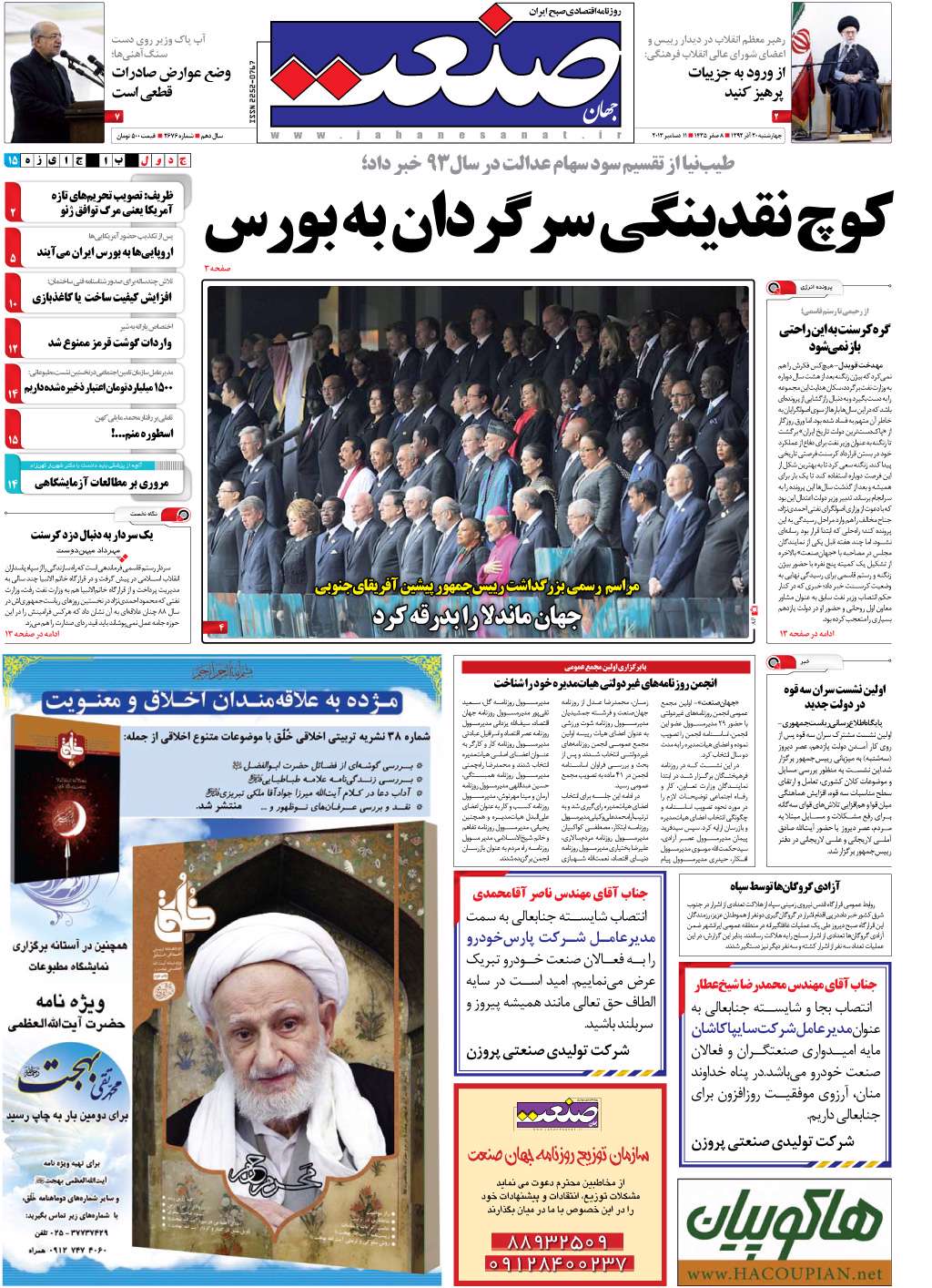 روزنامه جهان صنعت، چهارشنبه 20 آذر 1392
